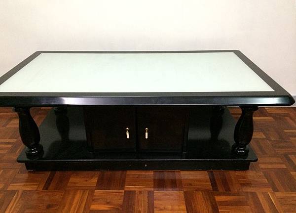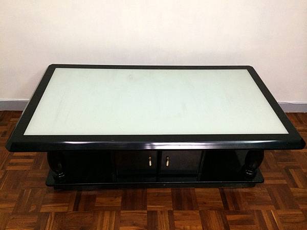 長方形茶几,質感佳,黑白配色經典, 下方有兩門可收納小物,售 $199
