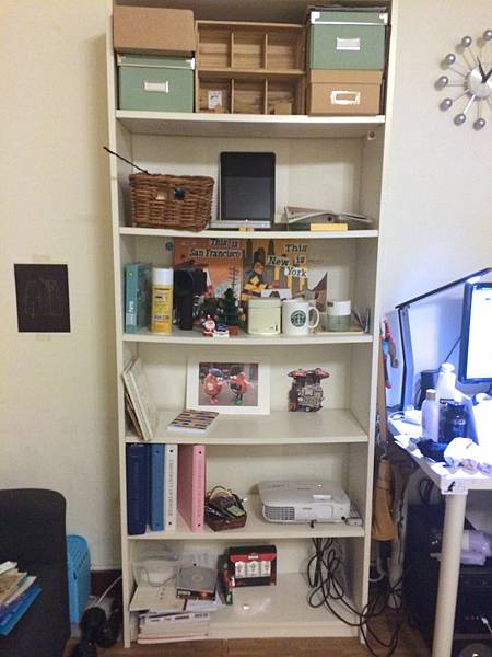 因台灣溼氣重,層板略呈「微笑」弧度彎曲、後背版無法密合, 但不影響書櫃正常使用,以原價一折售 $179。