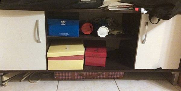 原功能為作電視架,有一層隔板收納, 也可作為小茶几、小邊桌...等多種功能使用。